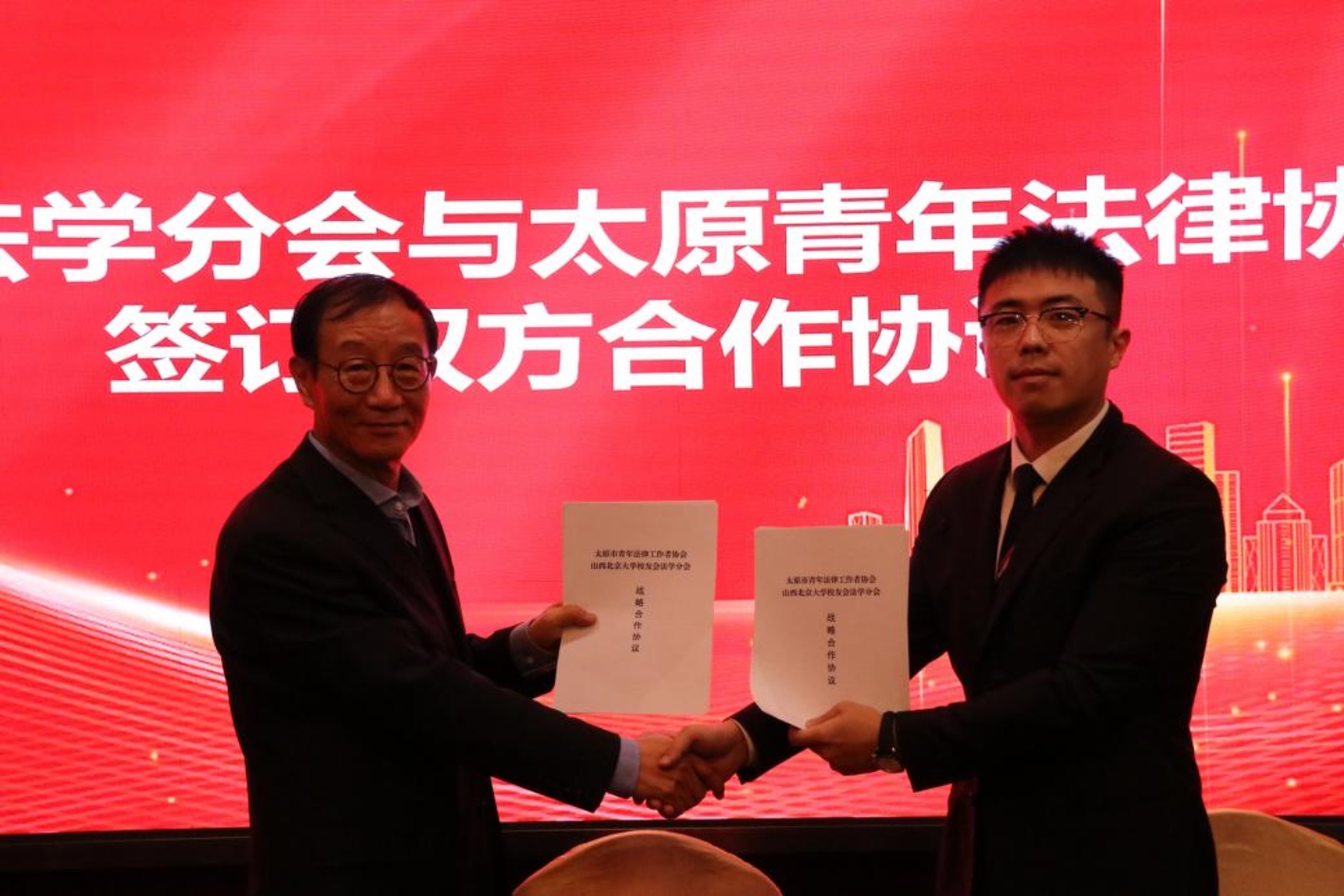 随后,山西北京大学校友会法学分会与太原青年法律协会签署合作协议,双方将在青年法律人才培养、法治实践服务、学术交流活动等方面开展深度合作,共同为青年法律人成长搭建平台。