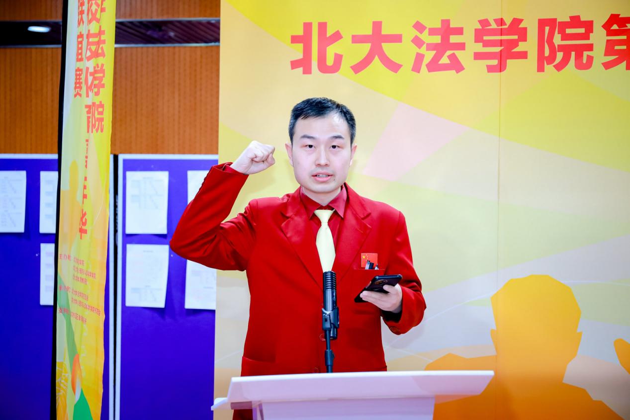 北京市蓝石律师事务所主任何胜文作为校友代表发言。他回顾了在北大法学院的求学时光,由衷感谢学院一直以来的悉心培养与长久支持。他表示,能够参与此次赛事倍感荣幸,未来将继续心系母校发展,积极贡献力量。他倡议大家秉持“友谊第一,比赛第二”的精神,在切磋技艺的同时,充分享受相聚的欢乐。