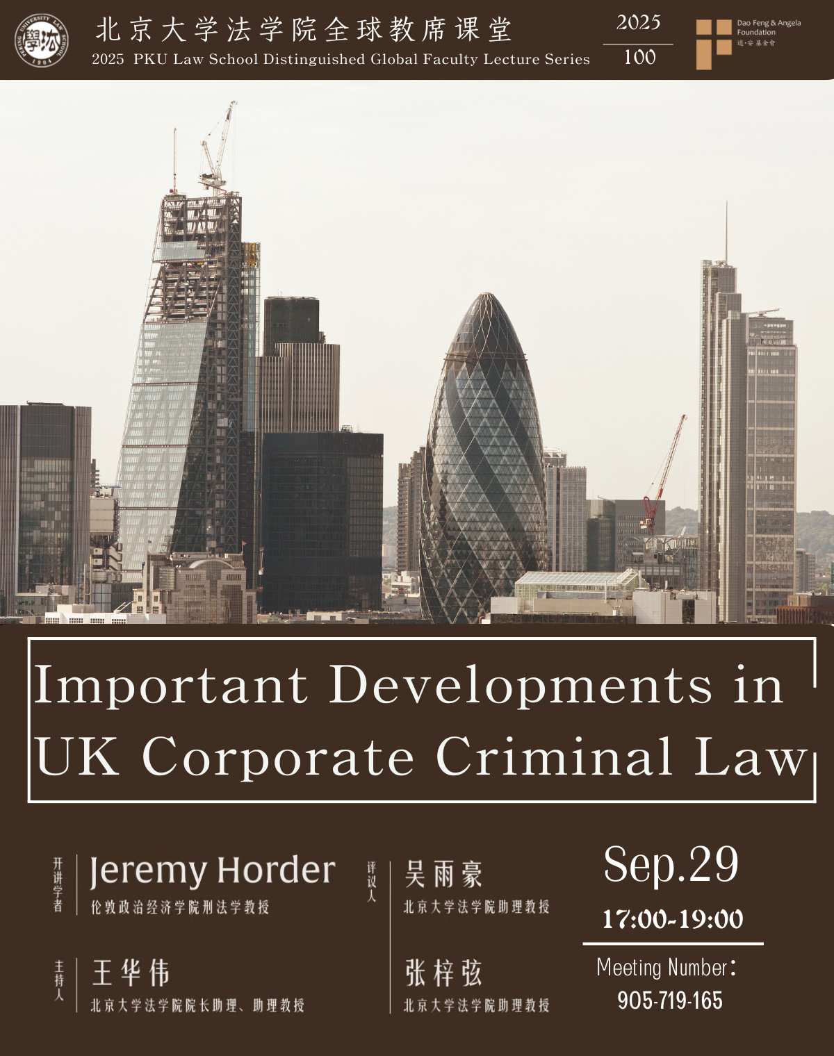 讲座回顾 || Jeremy Horder: 英国企业刑法的重要发展2025年9月29日,北京大学法学院全球教席学者、伦敦政治经济学院刑法学教授Jeremy Horder举办了题为“英国企业刑法的重要发展”的学术讲座。讲座由北京大学法学院院长助理、助理教授王华伟主持,北京大学法学院助理教授张梓弦、吴雨豪担任评议人。讲座吸引了校内外众多师生参与,活...062026 01月 -