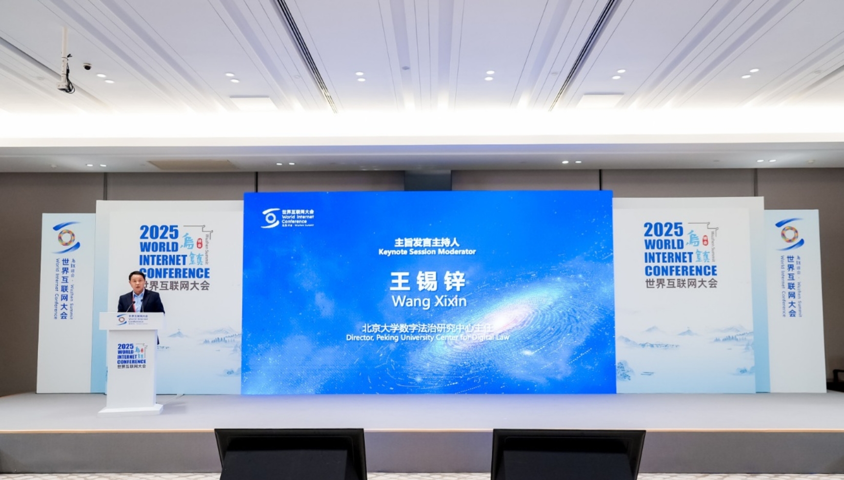 11月9日,2025年世界互联网大会乌镇峰会网络法治论坛于浙江乌镇举行。本次论坛由国家网信办、北京大学主办,北京大学法学院、北京大学数字法治研究中心、腾讯公司协办。与会嘉宾围绕“建构人工智能良法善治共识”,深入交流了人工智能时代的法治建设问题。中国国家互联网信息办公室副主任杨建文,司法部副部长李明征,浙江省人民政府副省长、省公安厅厅长杨青玖,北京大学常务副校长、中国科学院院士张锦出席论坛并致辞。