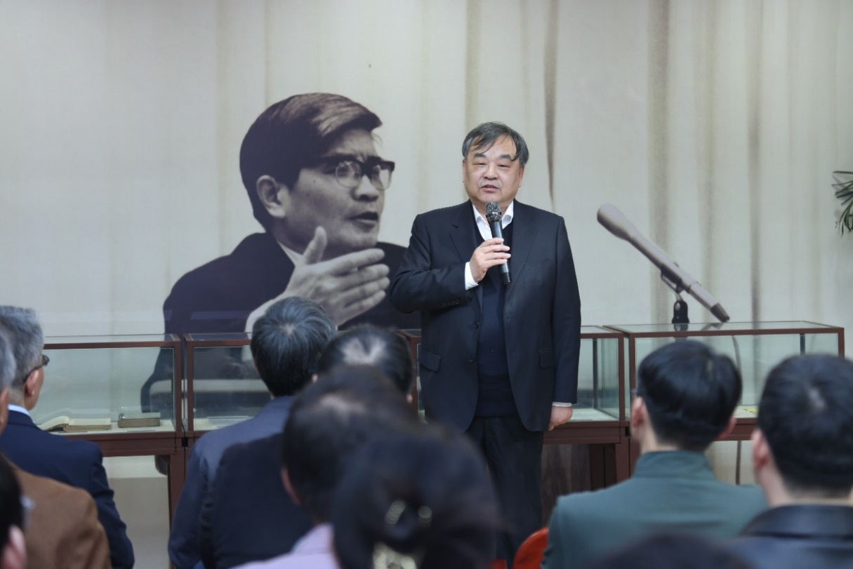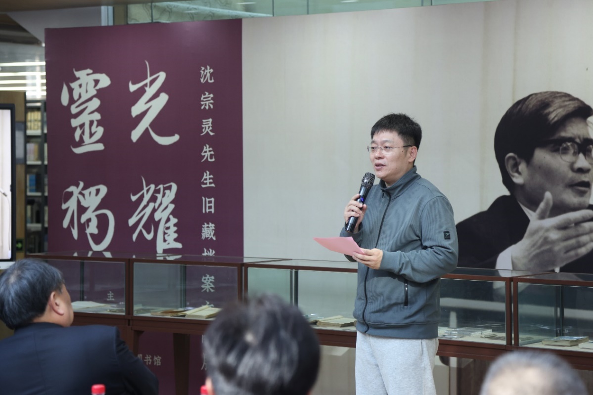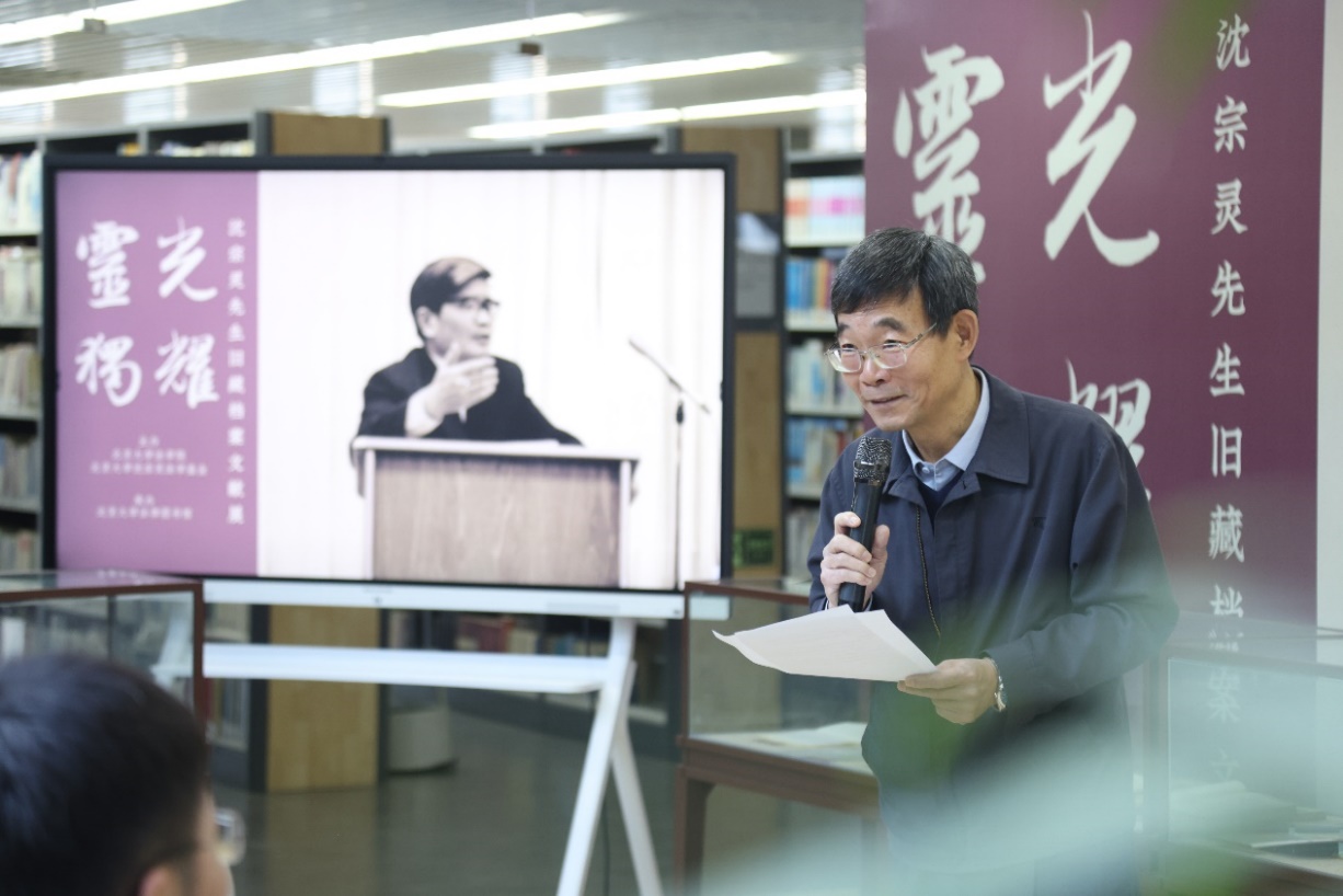 张骐作为沈宗灵先生弟子与展览倡议者致辞。他介绍了本次文献展的创办初心与文献由来。他向沈宗灵先生的子女表达最诚挚的感谢,沈莉女士、沈波先生向北京大学法律图书馆慷慨捐赠的沈宗灵先生生前珍藏图书与手稿、书信材料,为本次展览奠定了坚实基础。他对北京大学法律图书馆陈志红馆长与同事们的积极响应和高效协作、对北京大学法学院助理教授吴景键的持续付出、对王晨光教授、李清伟教授、孙海波教授、姜朋副教授等诸多师友的大力支持表示感谢。