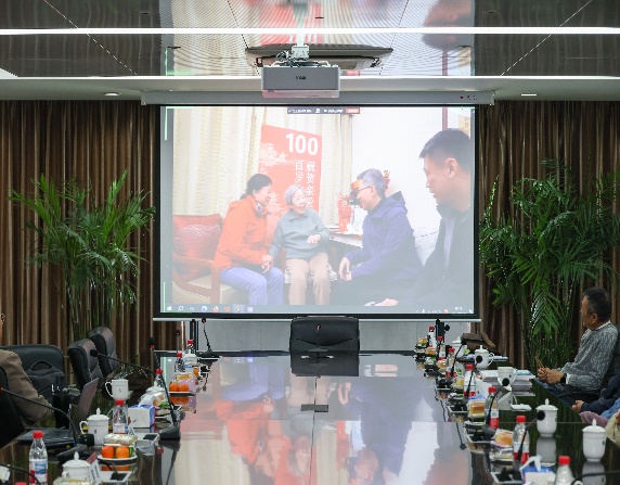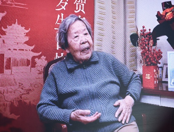 会上特别播放了学院领导慰问百岁教师张秀云老师的视频,展示了她近年来创作的画作。随后,学院领导为年满八十岁的刘守芬老师赠送红围巾,表达敬意与祝福,现场掌声热烈,气氛感人。